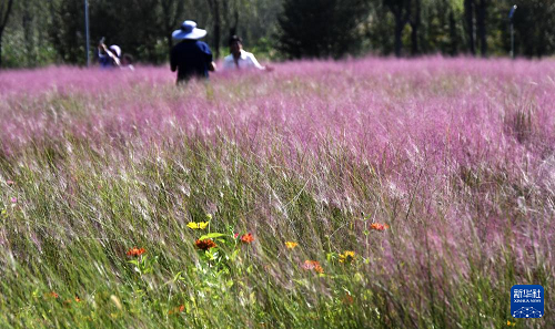 9月24日,市民在順義區(qū)后沙峪鎮(zhèn)的溫榆河公園內(nèi)休閑賞花。(新華社記者 李欣 攝)