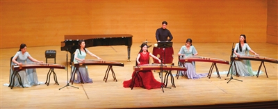 壓軸登場(chǎng)的古箏協(xié)奏曲《紫禁·瑤光》堪稱本場(chǎng)演出視聽(tīng)亮點(diǎn)。吉煒領(lǐng)奏的團(tuán)隊(duì)以傳統(tǒng)箏搭配七聲弦制古箏及復(fù)原古樂(lè)器筑、軋箏,在王梓碩的打擊樂(lè)配合下,既展現(xiàn)宮廷音樂(lè)的風(fēng)雅,又以“玉之光采”頌揚(yáng)君子品格,古樸與創(chuàng)新的融合贏得全場(chǎng)持久掌聲。