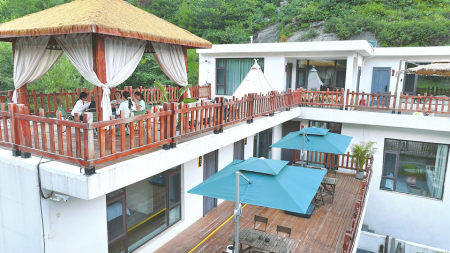 特色住宿業(yè)態(tài)則從高端到普惠多點(diǎn)開花,滿足不同客群需求。獨(dú)具匠心的設(shè)計(jì)融入自然景觀,讓游客在青磚灰瓦間品茶論道,感受山風(fēng)的輕撫,體驗(yàn)“結(jié)廬在人境”的閑趣。其中,光明寺村“早種晚收”露營(yíng)基地可以說是具有代表性的一處。在地方鎮(zhèn)政府和鄉(xiāng)村振興戰(zhàn)略的支持下,露營(yíng)基地依托東臺(tái)溝生態(tài)資源,建成28輛房車營(yíng)位并配套露天電影、自助燒烤區(qū),智能充電樁、星空觀景臺(tái)、生態(tài)衛(wèi)生間等現(xiàn)代化設(shè)施,年均接待游客超2萬人次,成為社交平臺(tái)上的“網(wǎng)紅打卡地”,在戶外休閑旅游和特色住宿市場(chǎng)中建立了良好的聲譽(yù)和強(qiáng)大的競(jìng)爭(zhēng)力。