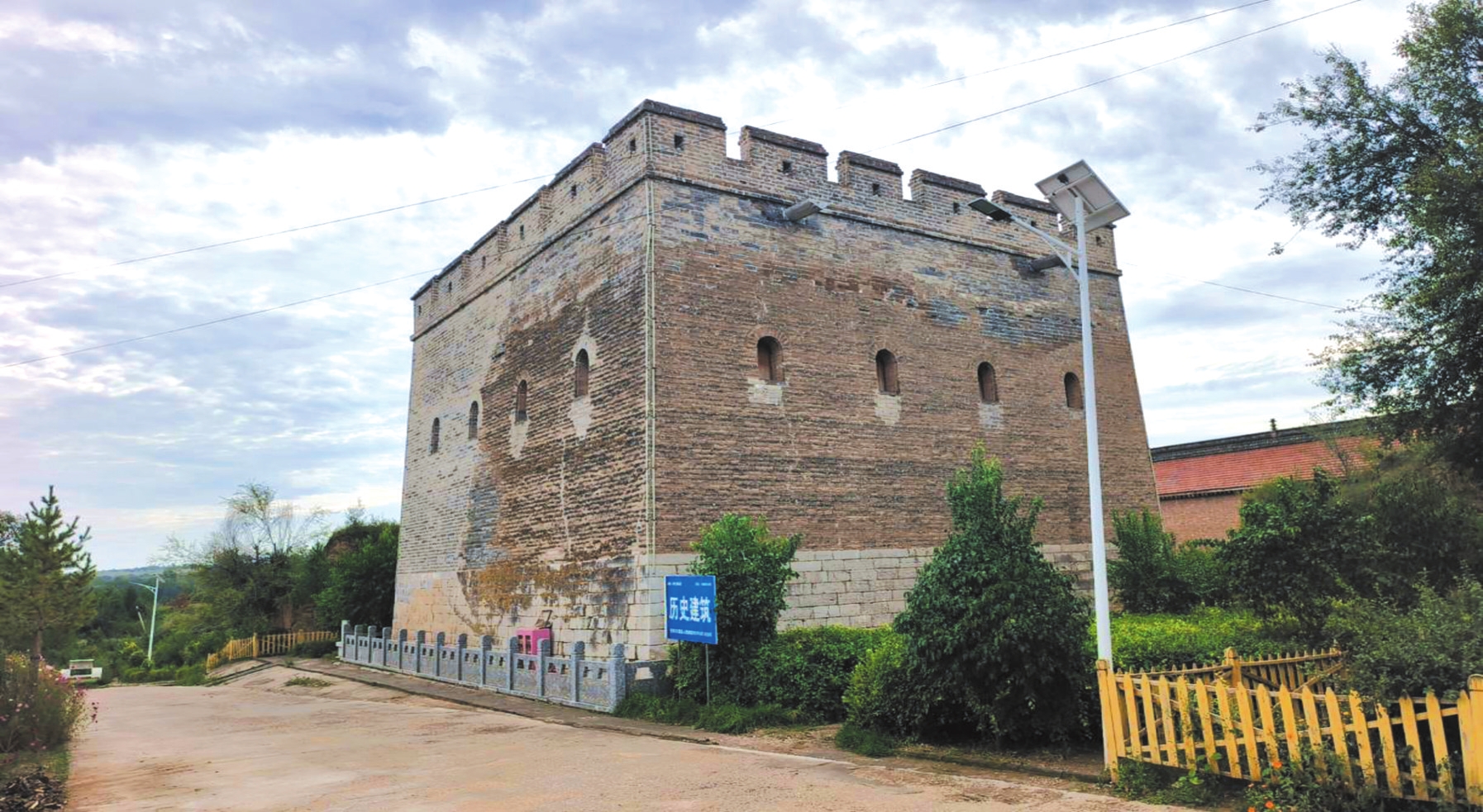 郭家河靖邊樓位于五寨縣東秀莊鄉(xiāng)郭家河村。據(jù)縣志考證,此樓建于明代萬歷年間,坐北朝南,平面呈正方形,邊長約16米,占地面積約259平方米。通高11米,頂部設垛口,內(nèi)部形制為環(huán)形,磚砌拱券,四面布箭窗。靖邊樓南面正中為拱券石門,門額鑲嵌石匾,四周雕刻云勾紋,上刻楷書“靖邊樓”,下刻落款“山西路管轄太原……岢嵐營守部指揮趙恭”等字樣。靖邊樓堡墻長約1600米,基寬3至6米,殘高5至7米,夯層厚度10至15厘米。靖邊樓作為明代保境安民的邊塞防御體系,對明代中期邊防軍事部署研究具有重要作用,具有較高的歷史價值、藝術價值和科學價值。