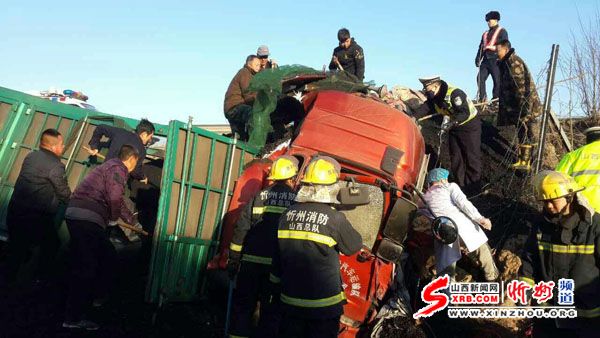 7:30分左右,定襄縣消防接警后緊急出動趕到事故現(xiàn)場,與交警及現(xiàn)場群眾一起展開救援,隨后趕到的120醫(yī)護人員已給被困受傷司機打吊瓶進行搶救。