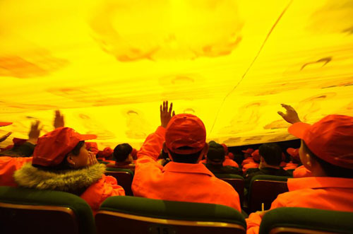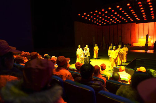 4月13日晚,五臺山風景名勝區(qū)近200名環(huán)衛(wèi)工人成為《又見五臺山》大型情境體驗劇場風鈴宮內(nèi)的座上賓。五一將至,為了表達對五臺山景區(qū)美容師們——環(huán)衛(wèi)工人的感恩之情,又見五臺山劇場免費邀請200多名景區(qū)一線環(huán)衛(wèi)工人免費觀看節(jié)目,為大家送上了一份精神大餐。