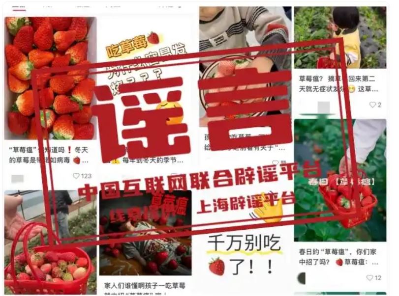 真相:近日,部分社交平臺(tái)出現(xiàn)大量有關(guān)“草莓瘟”的“善意提醒”,稱“孩子吃了草莓就會(huì)發(fā)燒咳嗽、上吐下瀉”“草莓上農(nóng)藥殘留量大”“草莓帶有諾如病毒”“大棚里種出來(lái)的草莓是反季水果”,建議大家近期不要食用草莓。經(jīng)核查,這些說(shuō)法都違背了農(nóng)業(yè)常識(shí),可能嚴(yán)重誤導(dǎo)公眾。