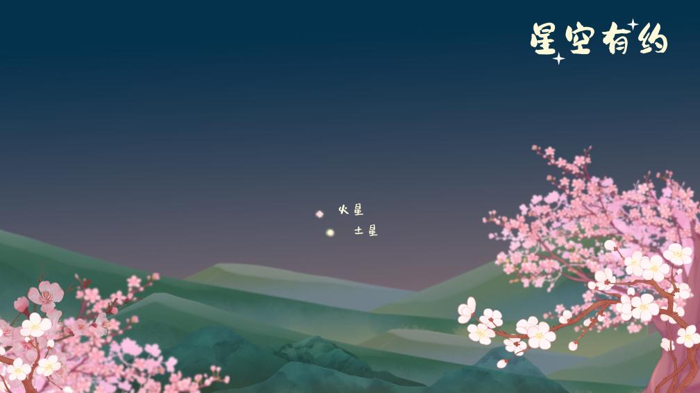 進入4月,火星與土星在黎明前的低空越靠越近,11日最近,二者之間的角距離近乎1個滿月視直徑大小。日出前,火星與土星攜手出現(xiàn)在東南方,但地平高度有些低,可觀測時間不足1小時。