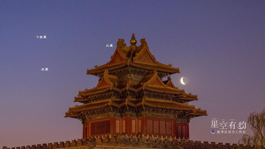 北京星空攝影愛好者吳魯萍2022年3月28日清晨在北京拍攝的金星、火星、土星與殘月。(本人供圖)