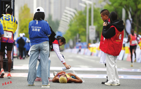 賽道內(nèi)外,另一群身影同樣令人動(dòng)容。志愿者們沿途遞水補(bǔ)給、指引方向,沙啞的嗓音里滿是熱忱;醫(yī)護(hù)人員隨身攜帶急救設(shè)備,目光緊盯著每一位跑者,隨時(shí)準(zhǔn)備伸出援手。他們的全程守護(hù),如同秋日里的暖陽(yáng),成為賽道上最溫暖的風(fēng)景。