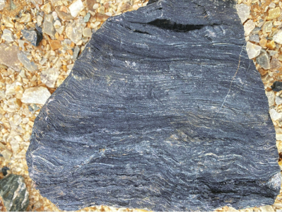 地殼深處的巖石并非靜止不動。在清水河谷的峭壁上,有一道“之”字形巖帶,這是位于地下的“韌性剪切帶”,其形成過程宛如慢動作下的“拉面條”。在地下500℃的高溫高壓環(huán)境中,巖石會逐漸變軟,如同橡皮泥般被板塊擠壓力“揉來揉去”。經(jīng)過上百萬年的拉伸,巖石形成了波浪狀褶皺,其中的白云母晶體甚至被拉長10倍,形似銀針,清晰記錄著巖石變形的強度。