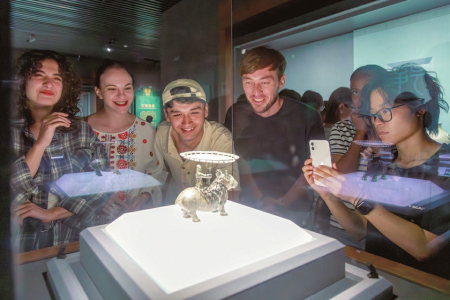 上海政法學(xué)院十余名國際留學(xué)生走進(jìn)山西博物院,感受三晉文明底蘊(yùn)。山西博物院供圖