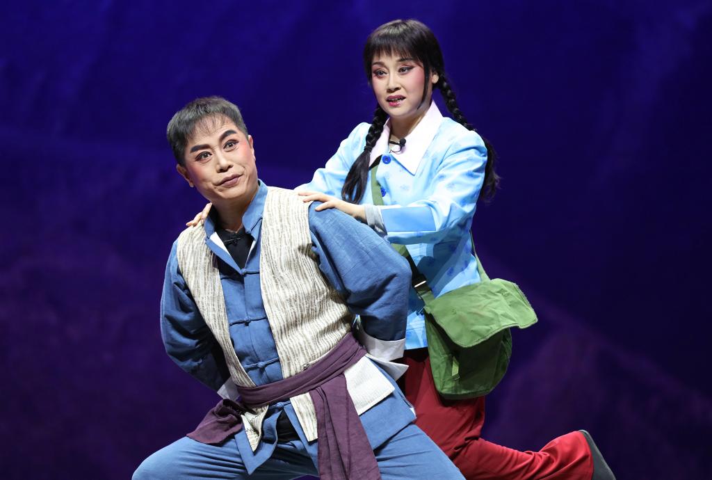 “只有讓段家灣綠起來(lái)、美起來(lái),才能富起來(lái)……”《段家灣》是一部弘揚(yáng)主旋律、深入生活、扎根人民的精品劇目,以主人公柳玉珍放棄高考,毅然回到深度貧困的家鄉(xiāng),投身脫貧攻堅(jiān)事業(yè)拉開(kāi)序幕,講述了其堅(jiān)守初心使命,扎根基層一線,在留村任教、學(xué)醫(yī)救人、帶領(lǐng)村民脫貧致富的過(guò)程中,始終牢記共產(chǎn)黨員第一身份,用忠誠(chéng)擔(dān)當(dāng)書(shū)寫(xiě)人生答卷的動(dòng)人故事,體現(xiàn)了她心系群眾、無(wú)私奉獻(xiàn)、不懼困難的拼搏精神。該劇以北路梆子貫穿全劇,融合曲藝、舞蹈、音樂(lè)等多種舞臺(tái)藝術(shù)形式,將舞臺(tái)演繹和舞臺(tái)制作深度融合,場(chǎng)景布置和服裝設(shè)計(jì)力求還原生活真實(shí),富有鄉(xiāng)村生活質(zhì)感和泥土氣息。每一場(chǎng)表演都帶給觀眾滿滿的感動(dòng)和精神的洗禮,現(xiàn)場(chǎng)不時(shí)響起雷鳴般的掌聲。(圖為范濤 王國(guó)棟攝)