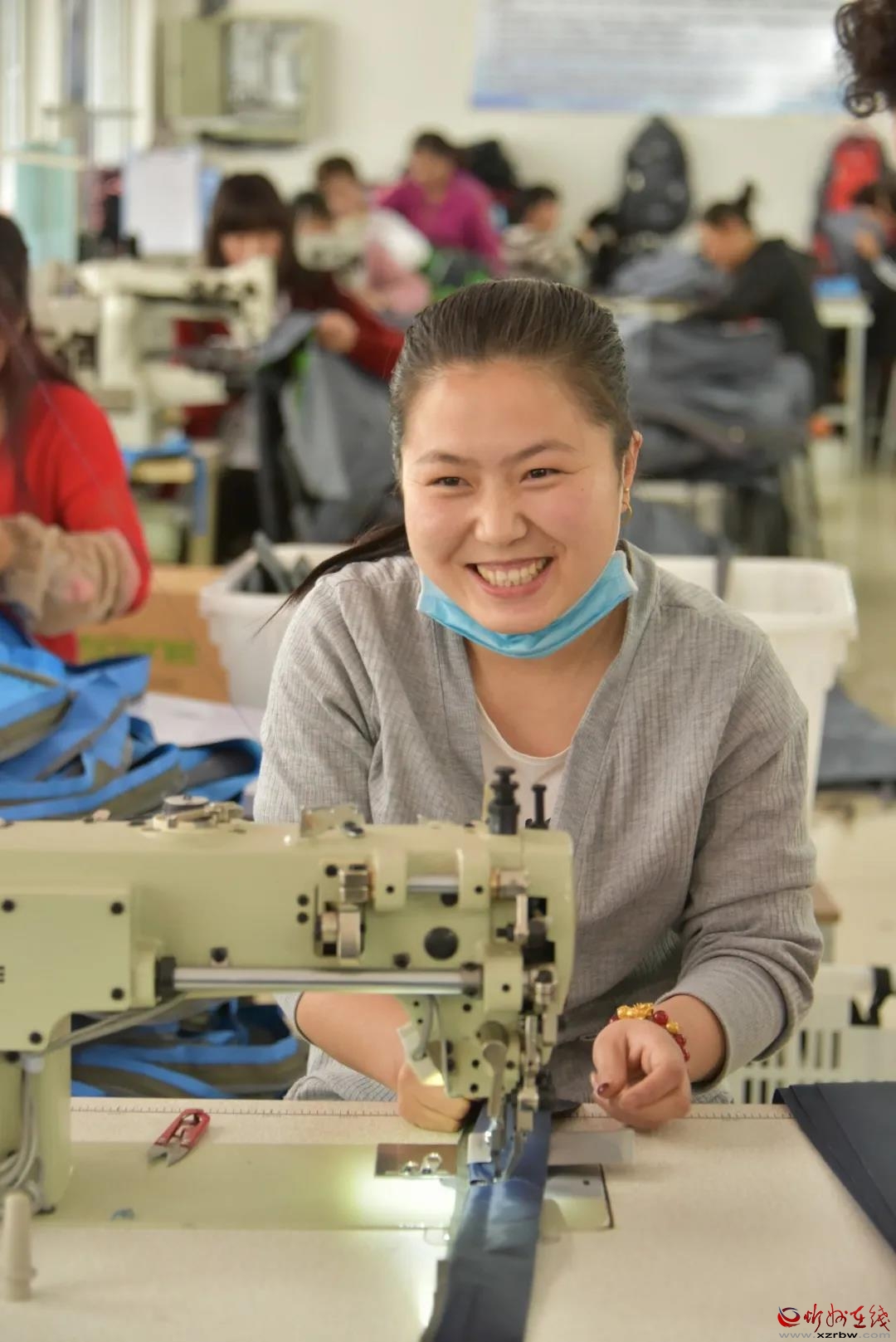 繁峙縣濱河移民小區(qū)箱包加工車間。忻州日?qǐng)?bào)資料圖