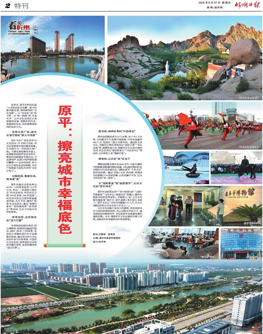 從今天起,《看見忻州》推出縣域篇,展示各縣(市)在基礎設施、文化場館、公園綠地等方面的成績,反映城市品質和人民生活水平的提升。本報二版整版推出首篇《原平:擦亮城市幸福底色》,以饗讀者。
