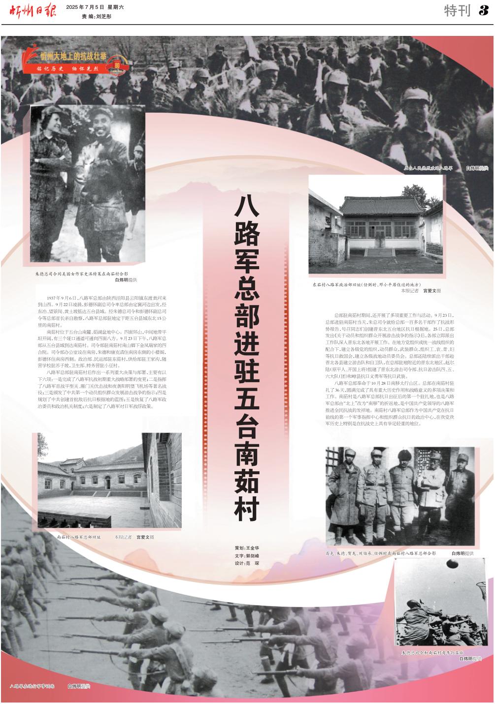 1937年9月6日,八路軍總部由陜西涇陽縣云陽鎮(zhèn)東渡黃河來到山西。9月22日凌晨,彭德懷副總司令率總部由定襄河邊出發(fā),經(jīng)東冶、望景崗、黃土坡抵達(dá)五臺(tái)縣城。經(jīng)朱德總司令和彭德懷副總司令等總部首長親自勘察,八路軍總部駐地定于距五臺(tái)縣城東北15公里的南茹村。