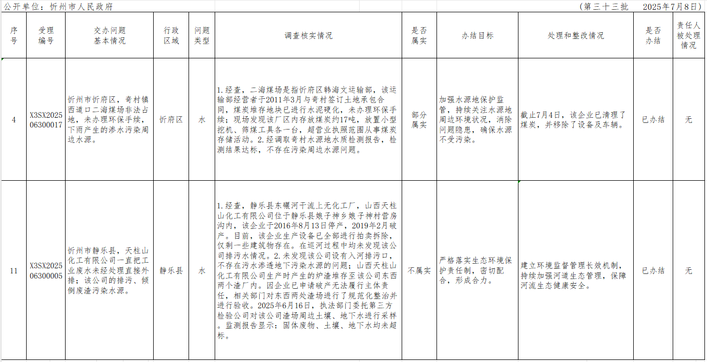 中央生態(tài)環(huán)境保護督察組群眾信訪舉報轉(zhuǎn)辦和邊督邊改公開情況一覽表(第三十三批)