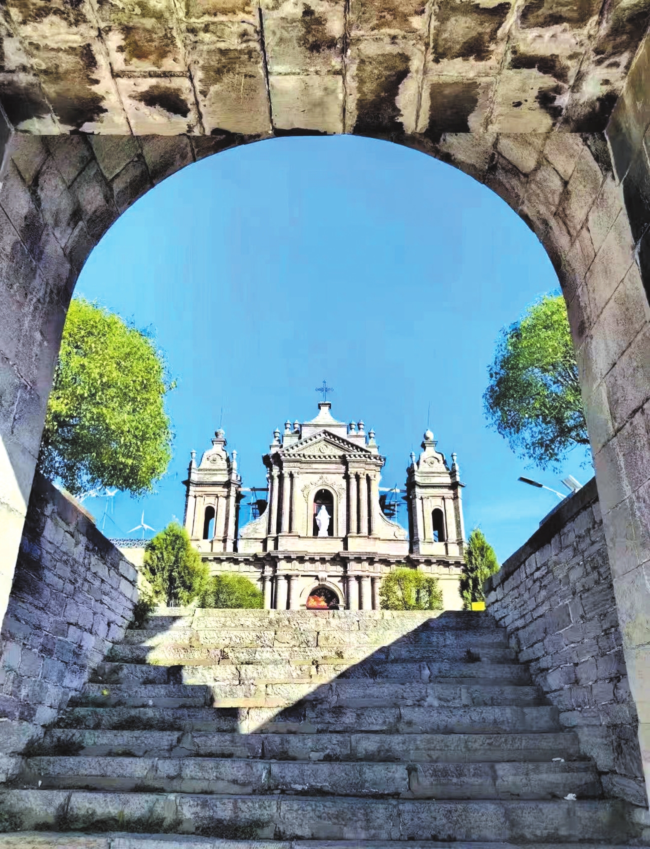 這座教堂始建于18世紀70年代,占地達三萬平方米。1897年—1898年間,意大利籍主教艾士杰與建筑師李有剛運用當?shù)仄胀ùu石,奇跡般建造出一座異國風情的高山城堡。教堂主體建筑簡練垂直,頂部裝飾方圓相間,數(shù)不清的十字架直指云天。內(nèi)部則完全是西式的雕像、壁畫和教務活動,讓人恍如置身歐洲。