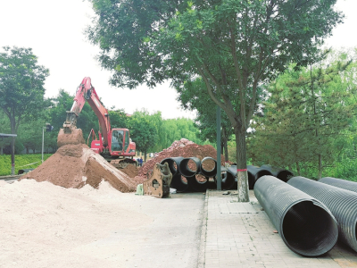 搶修路面工作正在緊張進(jìn)行。