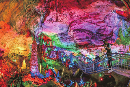 7月29日,忻州市禹王洞景區(qū)內(nèi),游人正在觀賞奇特的鐘乳石景觀。位于系舟山腰的禹王洞憑借洞內(nèi)8℃—11℃的恒溫及獨(dú)特地質(zhì)景觀,成為游客避暑納涼的熱門選擇。