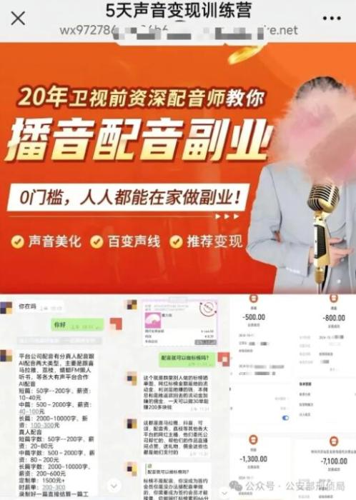 詐騙分子會在社交平臺以及網(wǎng)絡(luò)直播間中,發(fā)布投資理財課程、無門檻兼職、高薪赴境外工作等內(nèi)容的視頻。在獲得受害人關(guān)注后,詐騙分子會在評論區(qū)或者直播彈幕中發(fā)布“想了解更多,私信聯(lián)系客服”等評論,引誘受害人越過官方平臺加入所謂的“投資指導(dǎo)群”“配音群”“兼職群”“課程群”,進而實施詐騙。這種引流手段更具有迷惑性,有些甚至?xí)亯|幾個月的時間,當你放松警惕之后才實施詐騙。不要輕信社交平臺中短視頻發(fā)布的內(nèi)容。